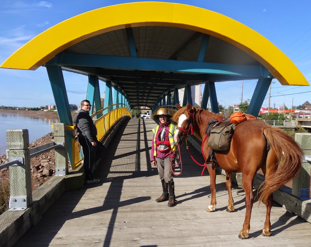 I had expected to find an ATM en route in Memramcook to withdraw more money to purchase the new horse, but the local garage only had a mini ATM which did not accept my Nat West card. "There's a bank five minutes away" the shop attendant informed me - rather unhelpfully as she meant five minutes by car, not the hour it would take me - the trials of travelling by horse. A group of local rednecks drinking in the store were singularly unresponsive to my plight, but thankfully a French couple took pity on me and gave me a lift.